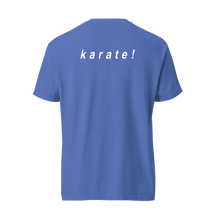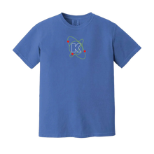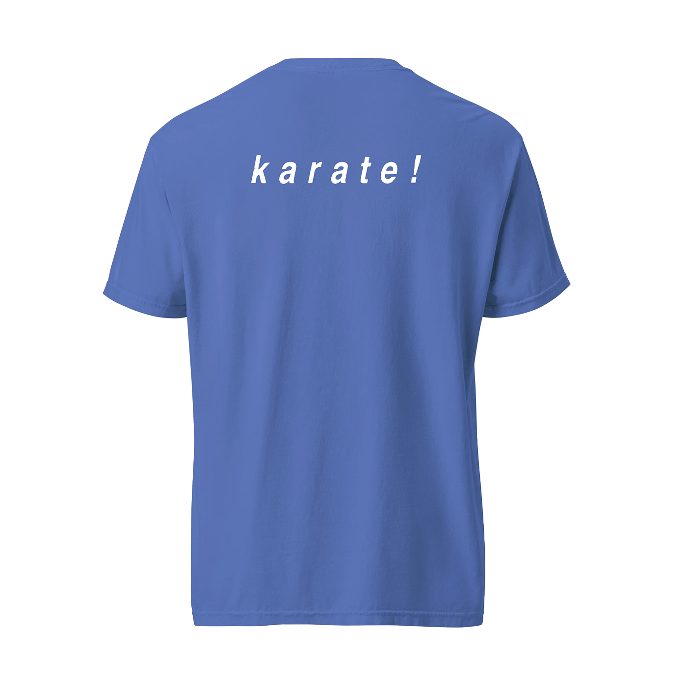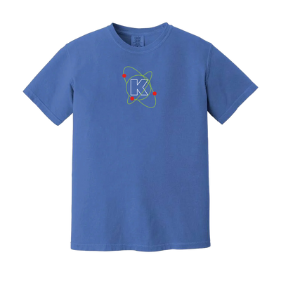 Back in their exclamation point days, Karate(!) was a big proponent of the cut n' paste aesthetic, upcycling post-war America's textbook clip art for their album and single cover art. The capital K ringed in swirling atoms appeared on their 1995 debut 7" for the Self Starter Foundation, and was quickly abandoned along with said exclamation point. This process blue, heavyweight, Comfort Colors tee reproduces that DIY spirit, and will certainly turn the head of any former zine maker. Not a death kit exactly, but you'll feel a little more of your youth slip away as the green, red, and white inks fade over hundreds washes.
