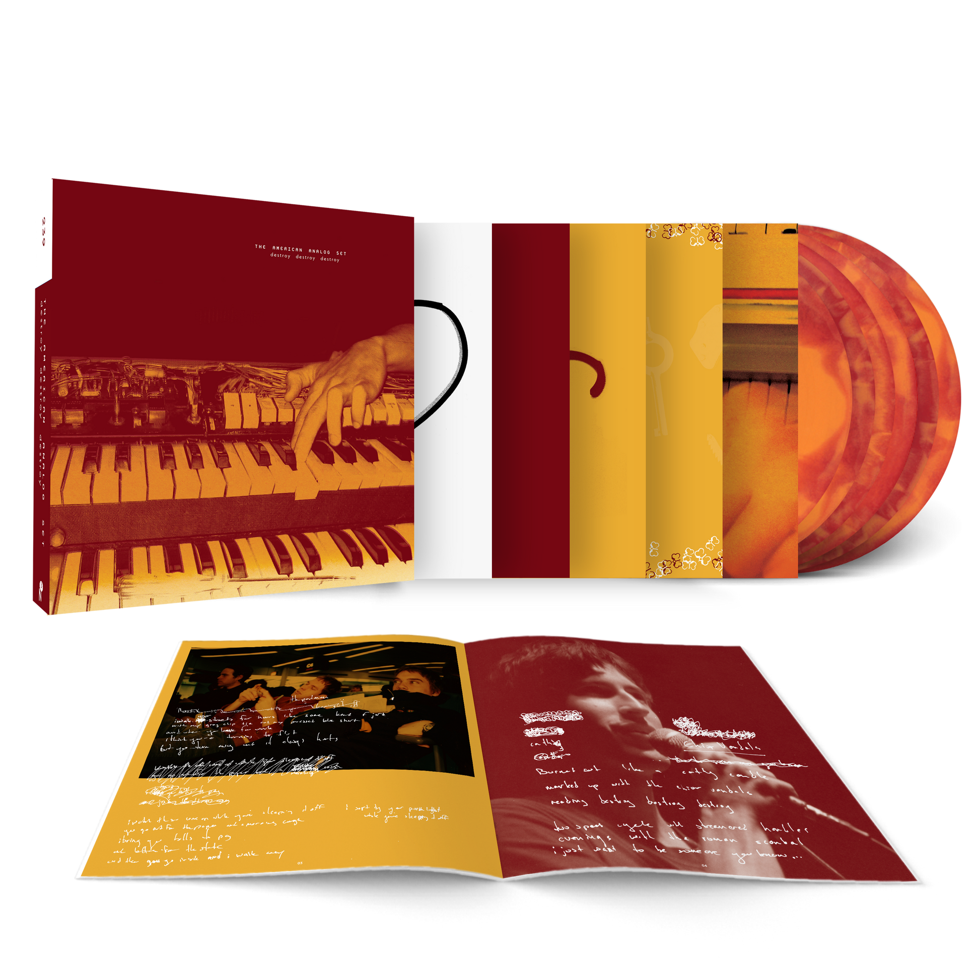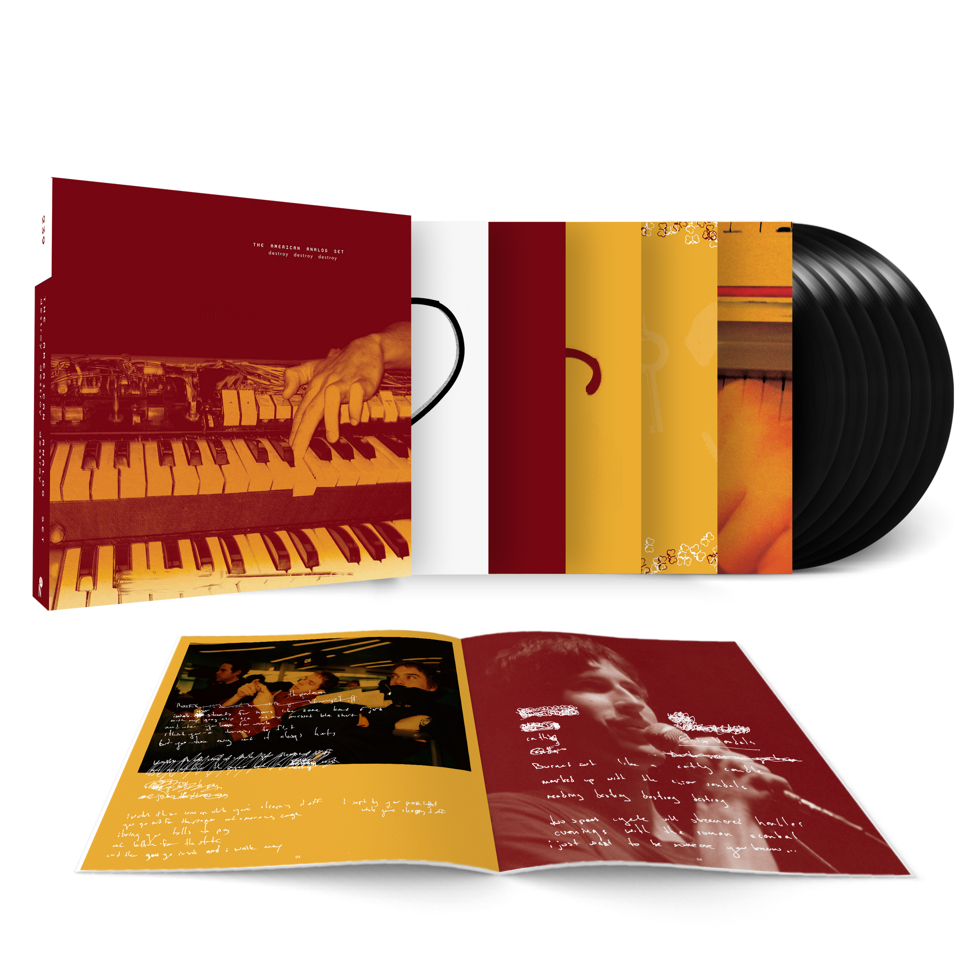 The complete studio recordings from The American Analog Set's second chapter. Destroy Destroy Destroy gathers the Texas slow-krauters Know By Heart, Promise Of Love, and Set Free LPs, Everything Ends In Spring EP, and an additional two discs of singles, B-sides, alternates and outtakes. Accompanying 36-page booklet is flooded with photos and handwritten scraps from the band's dreamy post-Y2K era. Punk as fuck, for real.